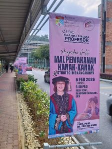 2月9日に本学が包括的学術連携を結んでいるUniversiti Kebangsaan Malaysia (UKM:マレーシア国立大学)のProf. Bee Koon Pohの教授就任講演がUKMで開催されました。Prof. Pohと香川副所長は約20年に亘り交流があり、共同研究を行ってきたほか、Prof. Pohや共同で指導していた大学院生を本研究所で受け入れました。今回の記念すべき講演会と同時に開催された研究業績の展示会では、本学及び本研究所との繋がりについても紹介され、香川副所長の挨拶動画が上映され、元院生による本学での留学生活を紹介する資料が展示されました。